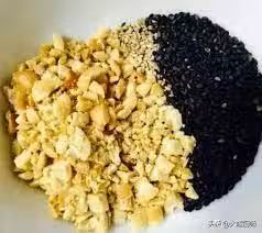 準備花生、黑芝麻、白芝麻、低筋麵粉、酵母粉、泡打粉、雞蛋、食鹽、白糖、食用油。