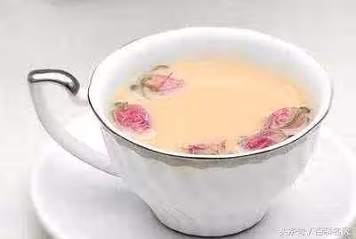 製法:將紅茶與玫瑰花一同放入茶壺中,用開水沖泡,倒入牛奶,待溫後調入蜂蜜即可。