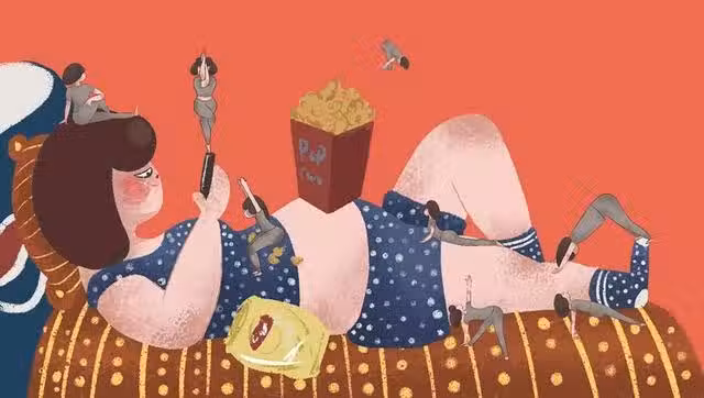 「天天喊減肥,天天吃飽飯就躺著,你不胖誰胖!」李阿姨看著女兒小文剛吃飽就躺下生氣地說。