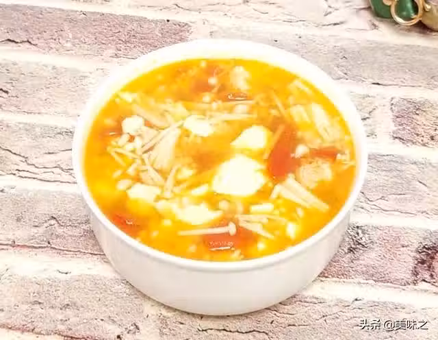 金針菇適量、日本豆腐三根、西紅柿一個、玉米油一勺、鹽一小勺。
