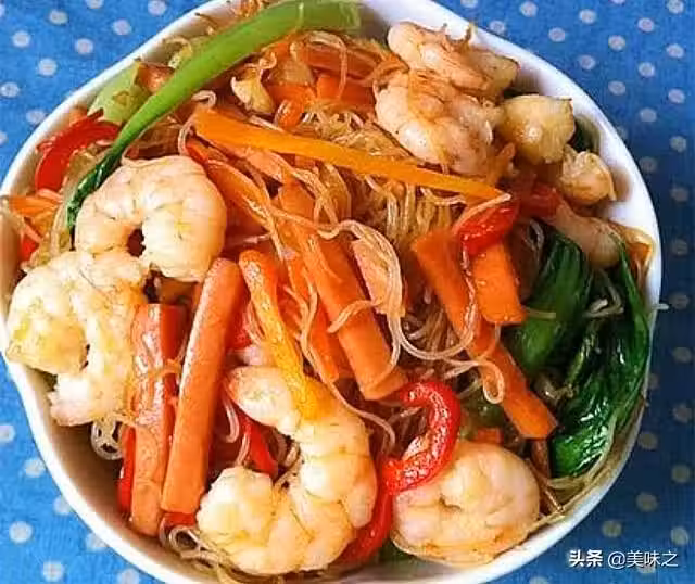 米粉、蝦仁、胡蘿蔔、紅辣椒、火腿腸、鹽、醬油、料酒、糖。