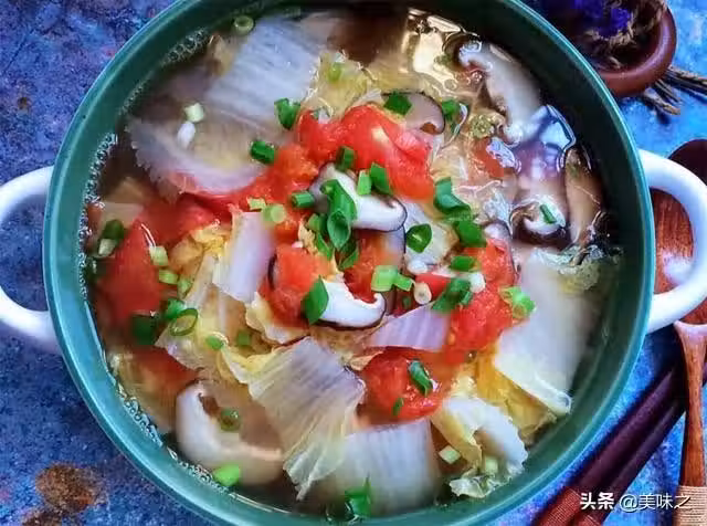娃娃菜、番茄、香菇、蔥、鹽。