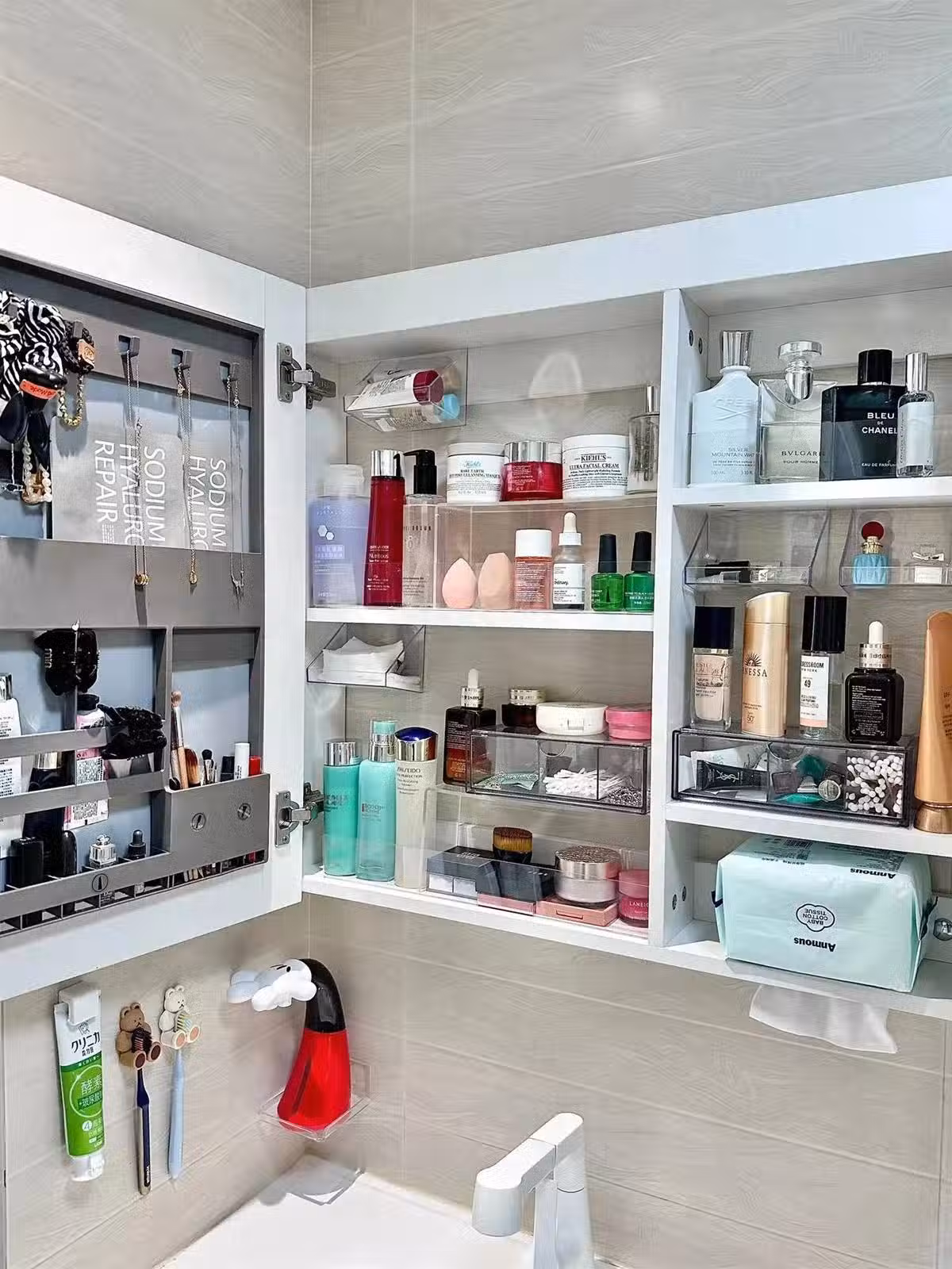 家裡的抽屜櫃、斗櫃、衛生間的鏡櫃,這些地方都可以充分利用起來,把東西整理好、收納好。