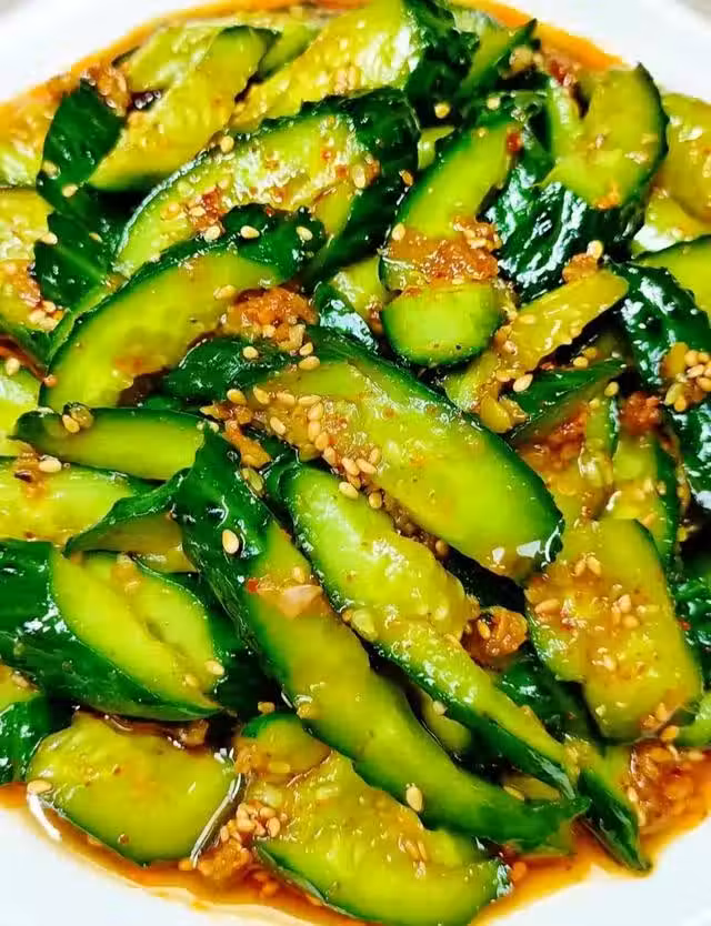 步驟一:調個料汁:碗中加一大勺蒜泥、一點辣椒粉(可加可不加)、芝麻,淋入熱油,再加一點糖、2勺陳醋、3勺生抽、半勺香油,調勻備用。