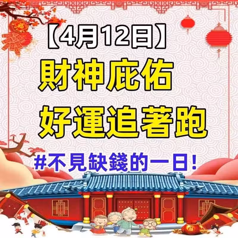 4月12日財神庇佑,好運追著跑,不見缺錢的一日!