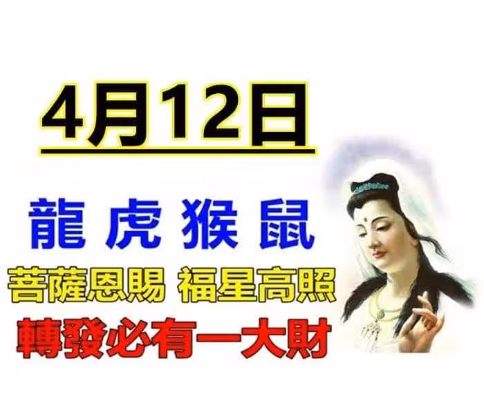 4月12日菩薩恩賜,福星高照(龍 虎 猴 鼠)轉發必有一大財