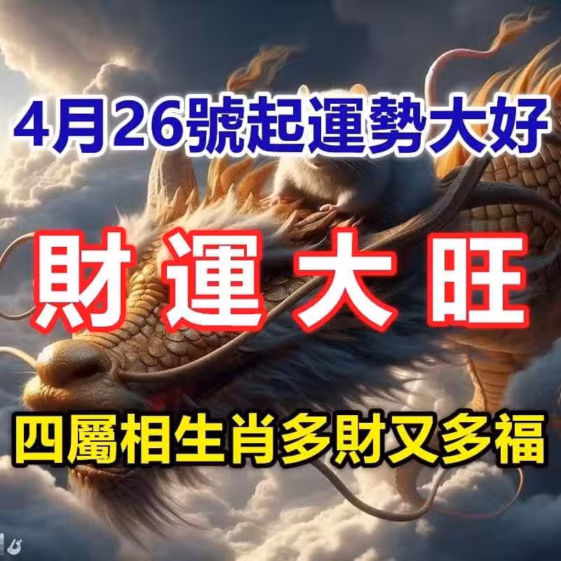 4月26號起運勢大好,四屬相生肖多財又多福,事業大有作為