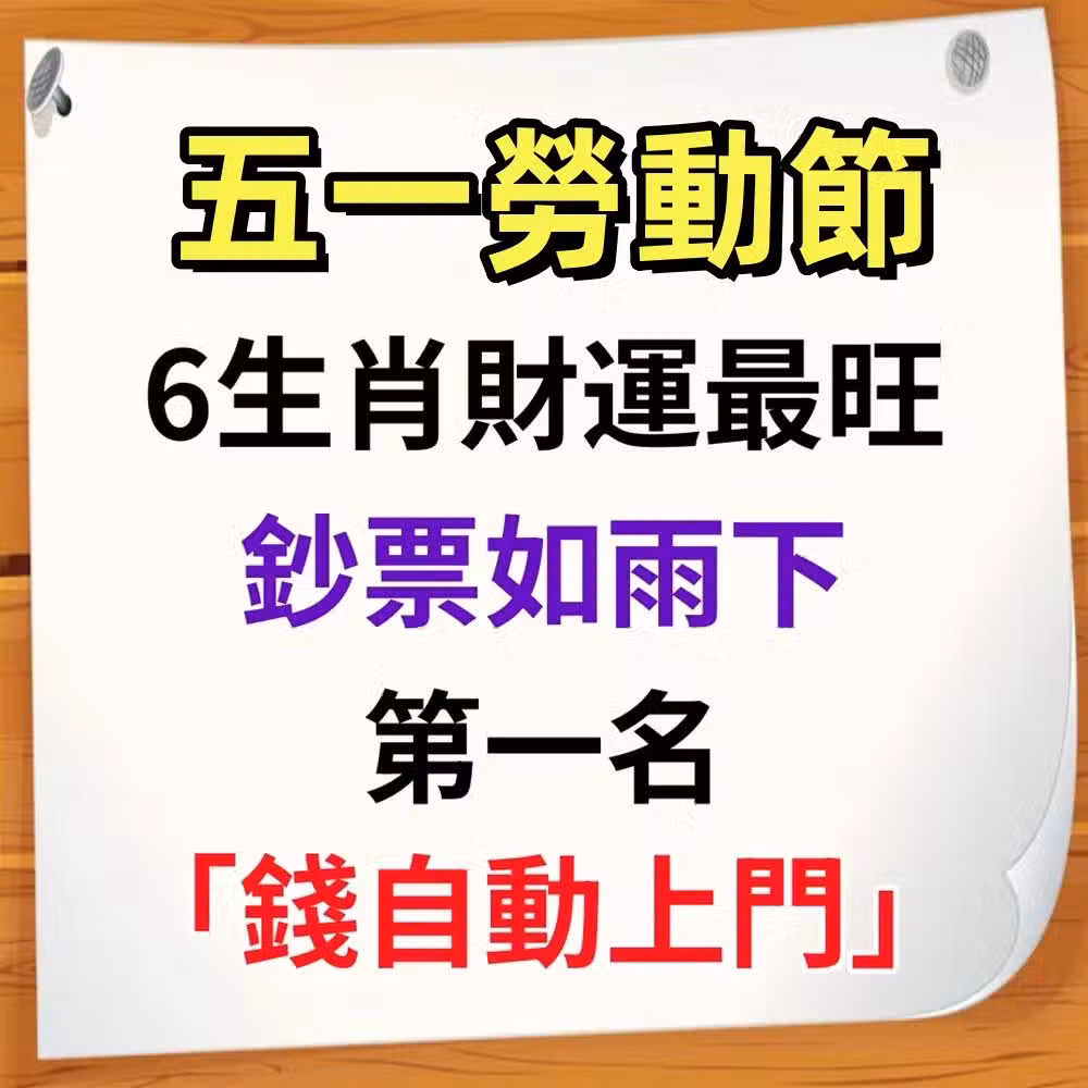 【五一勞動節】6生肖財運最旺 鈔票如雨下!第一名「錢自動上門」