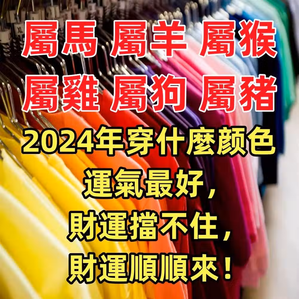 「屬馬、羊、猴、雞、狗、豬人 」2024年穿什麼顏色運氣最好,財運都擋不住,財運順順來!