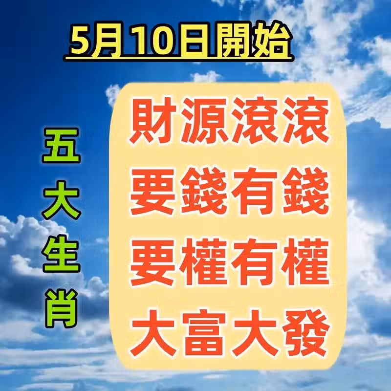 5月10日開始財源滾滾,要錢有錢,要權有權,大富大發的5生肖