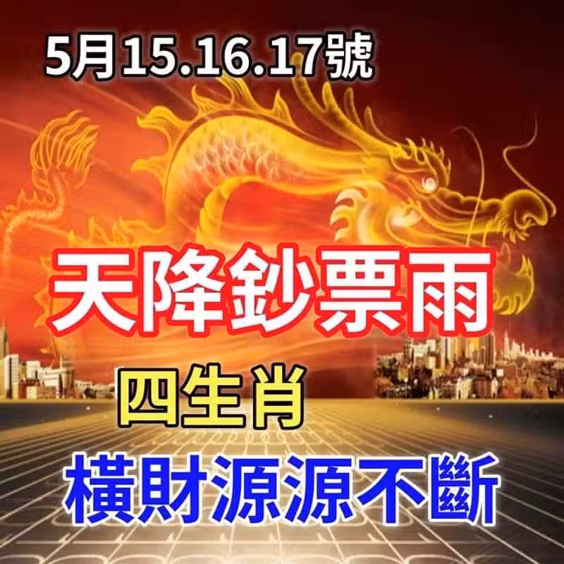5月15.16.17號天降鈔票雨,橫財源源不斷的生肖
