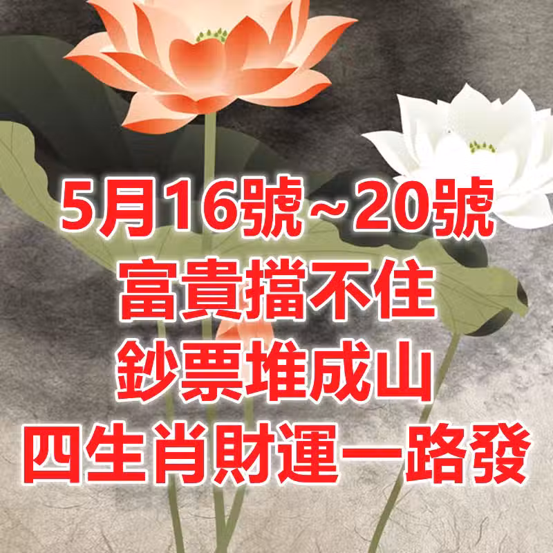 5月16號到20號富貴擋不住,鈔票堆成山,四生肖財運一路發