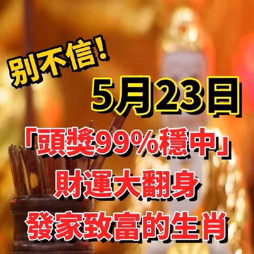 5月23日「頭獎99%穩中」財運大翻身,發家致富的生肖!