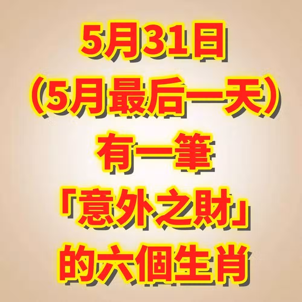 5月31日(5月最後一天)有一筆「意外之財」的六個生肖