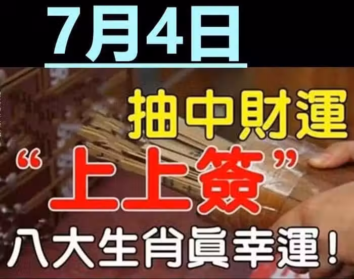 7月4日抽中財運(上上簽)八大生肖真幸運