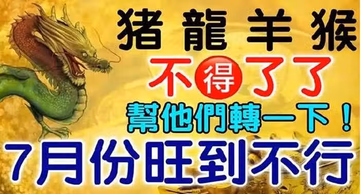 (豬 龍 羊 猴)7月份財運很旺,幫他們轉一下