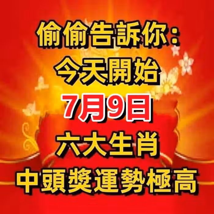 偷偷告訴你:今天開始(7月9號)中頭獎運勢極高的生肖!