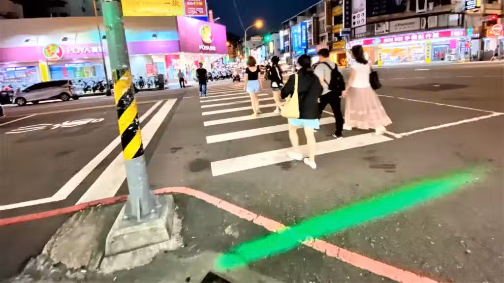 台中斑馬線新設投影紅綠燈,地板光源網友笑翻:過馬路要刷條碼