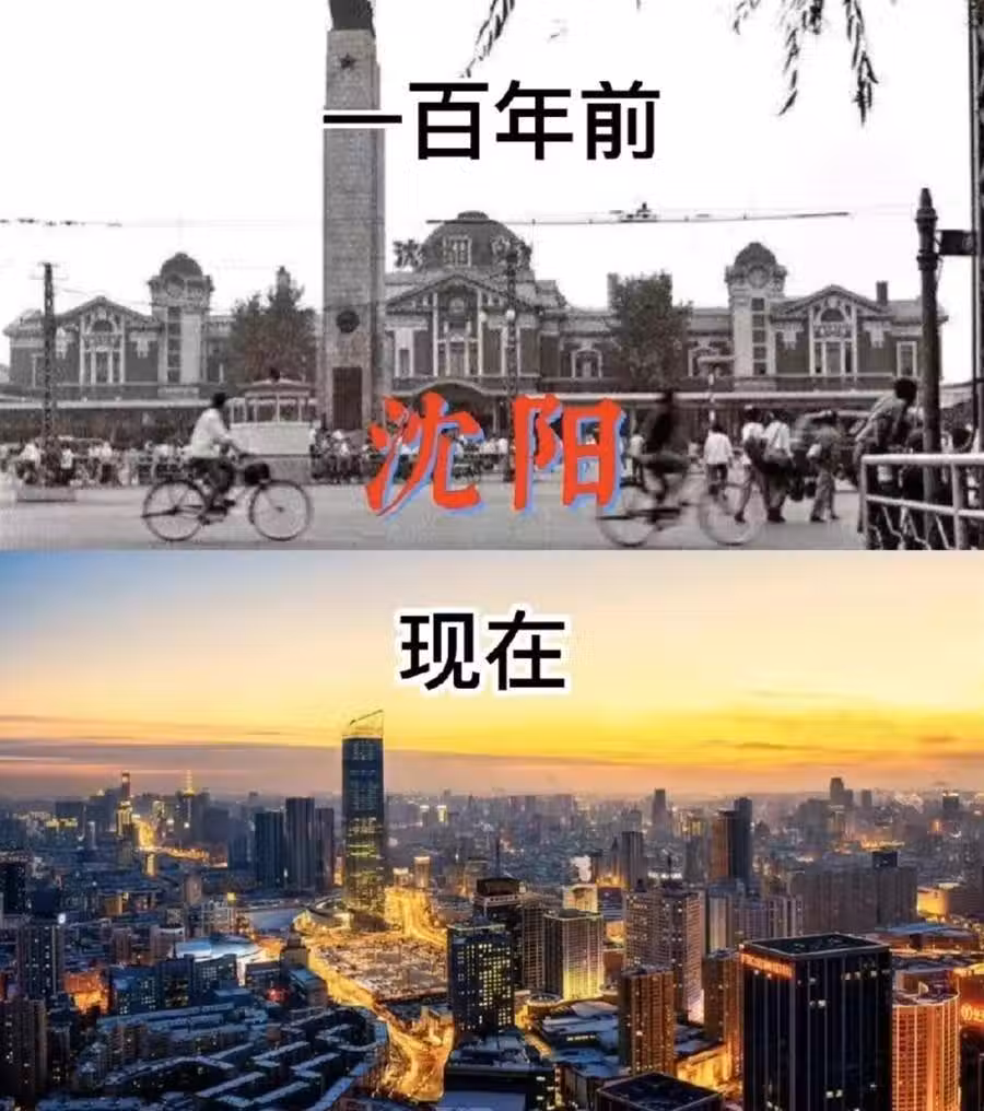 瀋陽的老照片中,市中心的街道寬闊而寧靜,行人稀少。如今,瀋陽的夜晚被璀璨的燈光所點綴,高樓大廈鱗次櫛比,城市的活力與繁華盡顯無遺。作為東北的中心城市,瀋陽在百年間發生了翻天覆地的變化。