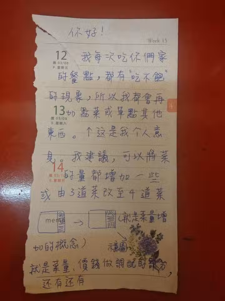 60元便當分量太少?老闆特地「給2倍飯菜」也沒用 學生把飯倒掉後「遞上一張小紙條」網友美送了!