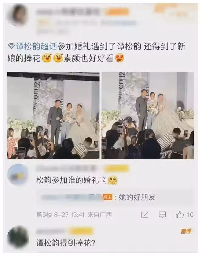 譚松韻的出席無疑為這場婚禮增添了一抹亮色,她的優雅和真誠的祝福讓所有人都感受到了她的溫暖。在這場盛大的婚禮上,她不僅沒有搶新娘的風頭,反而讓人們更加關注這對新人,這是她對好友最深沉的祝福。