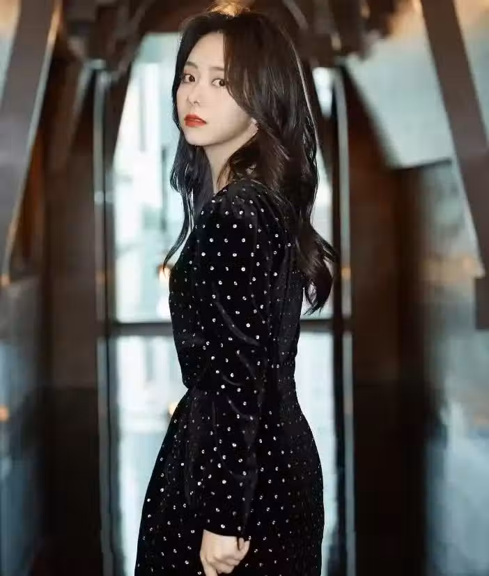 譚松韻徹底改變了,身穿黑色滿天星連衣裙大秀少婦風姿!