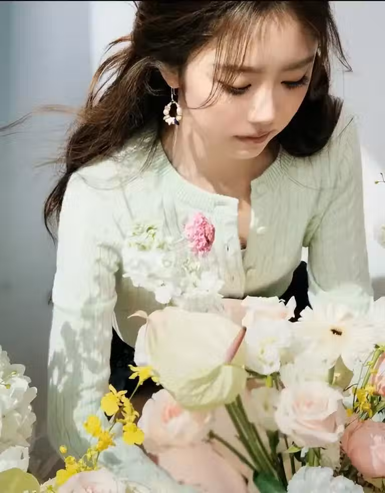 譚松韻化身插花少女,纖細小蠻腰身材好,淑女范兒!