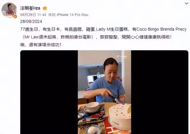 8月28日,77歲的汪明荃還曬出了自己過生日的照片。