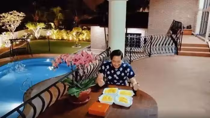 曾經四海為家的他,現在住在新加坡,文章曾分享三層樓豪華別墅,當時他在二樓陽台品嘗頂級榴槤,從二樓往下看,院子相當寬敞、種有花花草草,還有令人矚目的私家游泳池,泳池旁放置休閒椅、木製鞦韆,幾乎是渡假村規格!