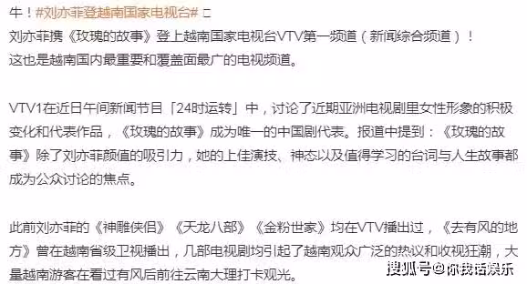 劉亦菲登越南國家電視台,《玫瑰的故事》成亮點!劉亦菲走向國外