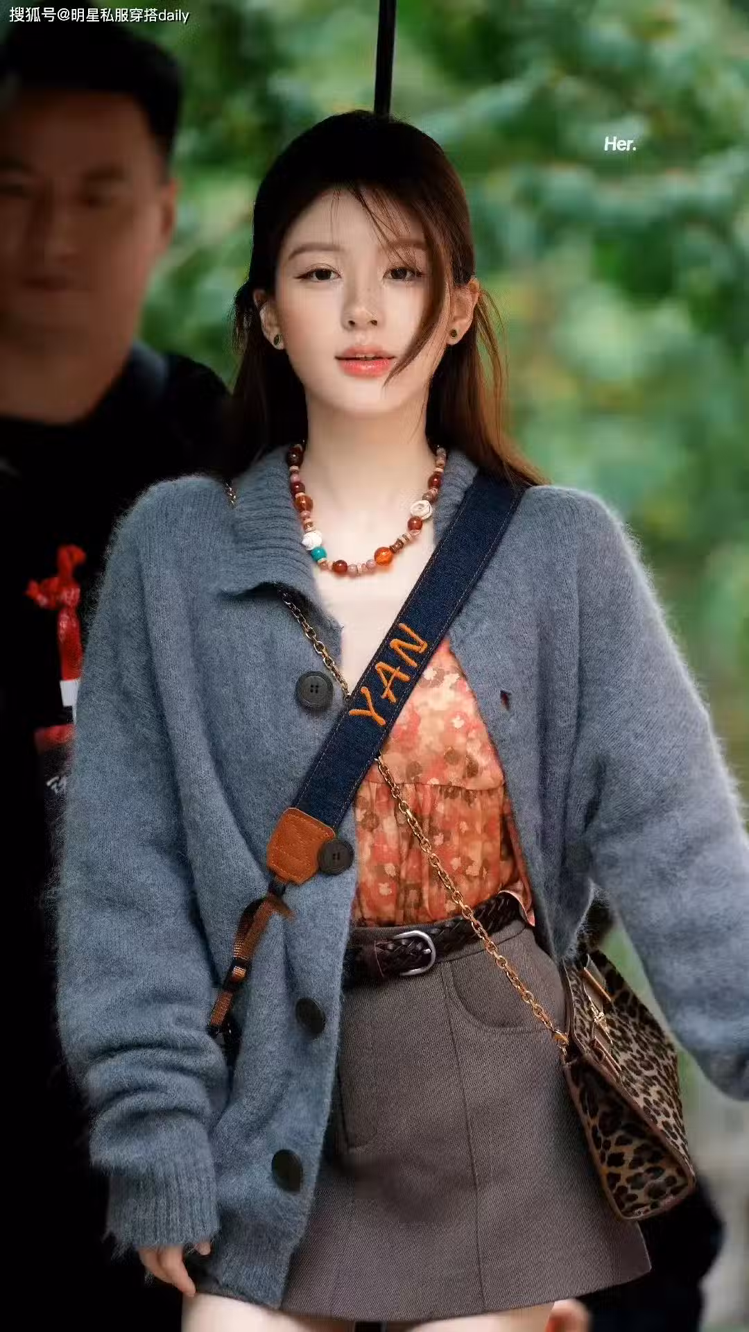 趙露思帶火了一種新穿搭叫「灰色毛衫+碎花內搭」,,輕鬆美出圈兒