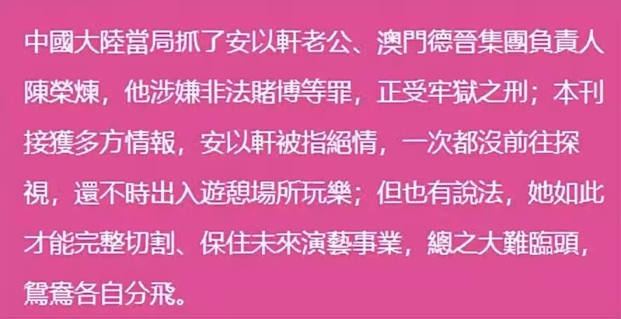 9月4日,一家台媒曝光安以軒的近況,雖然不愁錢花,但安以軒過得確實不輕鬆。