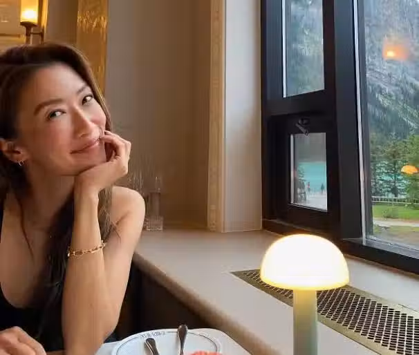 還有她和家人一起在溫哥華郊外別墅裡面享受美食的浪漫時光,鏡頭之中的謝婷婷同樣燦笑,左手托住下巴的她眉目傳神,拍攝者應該是老公吧。