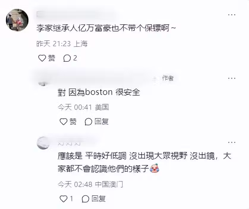 有網友直言,李長治是億萬富豪,卻不帶個保鏢。
