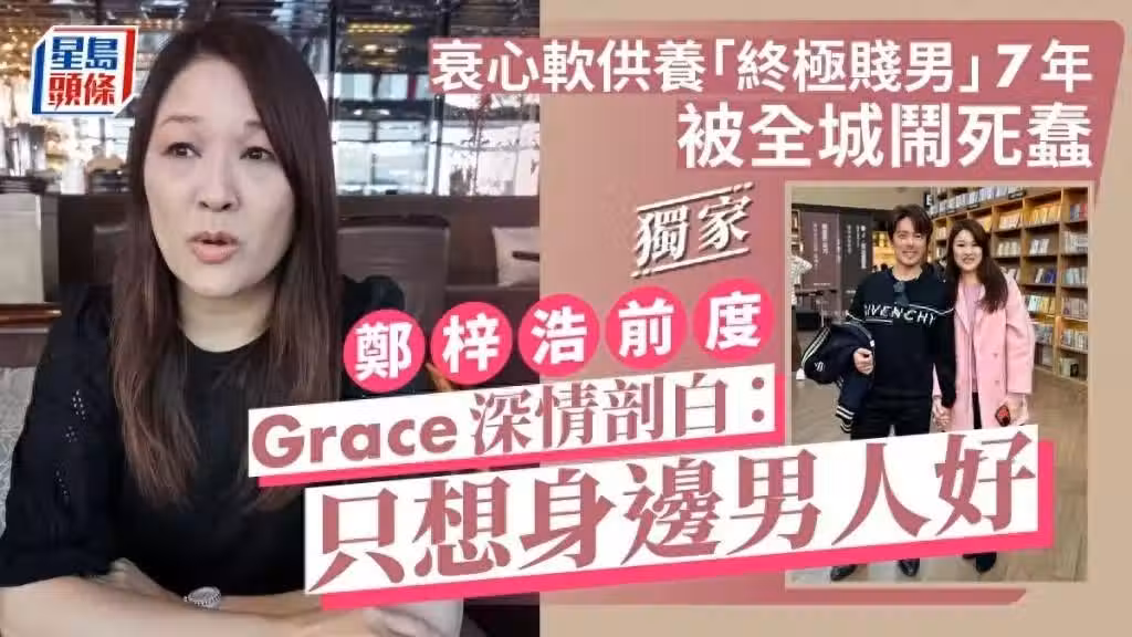 上周《星島環球網》獨家踼爆55歲的《中年好聲音2》選手鄭梓浩(Brian)是終極偷食軟飯王,轟動全城。討論區刷屏留言句句爆笑,但最多的是批評同居7年的舊愛Grace是蠢女人。決定公開真相後便潛水的Grace最後開腔,強調出錢出力幫鄭梓浩全因為愛,大義滅親只希望對方好好反省,更心痛表示:「不想他再用感情到處騙女生,再有更多人受害。」難過的她坦言被情傷搞到多次想了結生命。