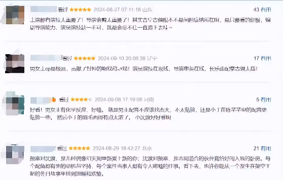 清一色五星好評,觀眾理由句句中肯,,這劇實在是香!