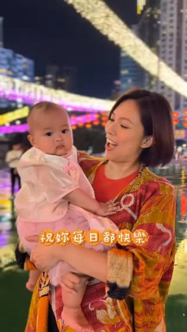 43歲香港女星帶10個月女兒賞花燈,腹部隆起孕味濃,曾計劃生4胎!