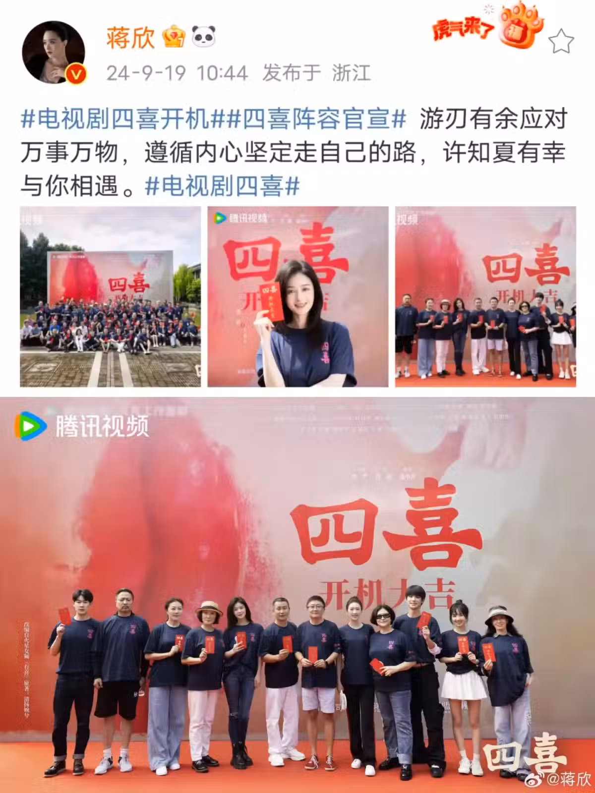蔣欣新劇《四喜》開機,網友:,期待美麗的許知夏!