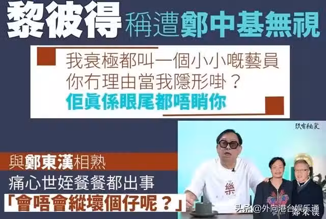 資深港星黎彼得怒批鄭中基:我把他當侄兒,他把我當空氣