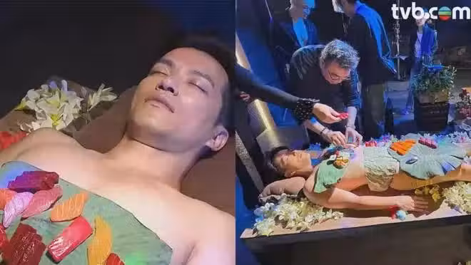 不少觀眾好奇他們身上的壽司拍攝後會如何處理,原來壽司全都是假的。而那若影若現的胸肌也同樣是假的,全靠化妝。