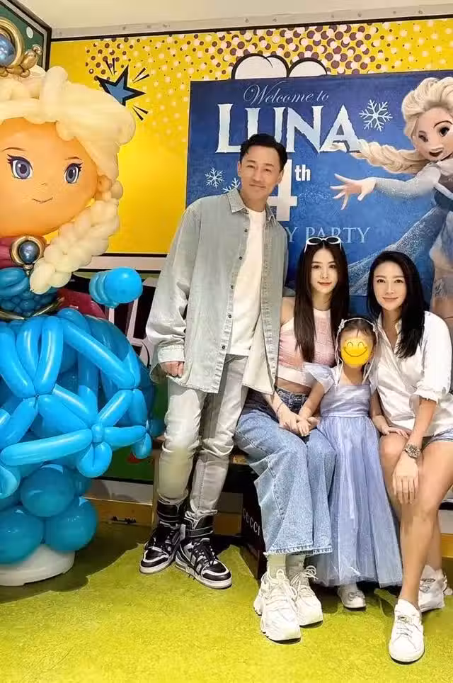 壽星女格格身穿淺紫色的公主裙,手持魔法棒,而林峯一身牛仔打扮,張馨月則穿上粉紅色掛脖背心,露出香肩和纖腰,從夫妻倆的肢體語言能看出相當恩愛。