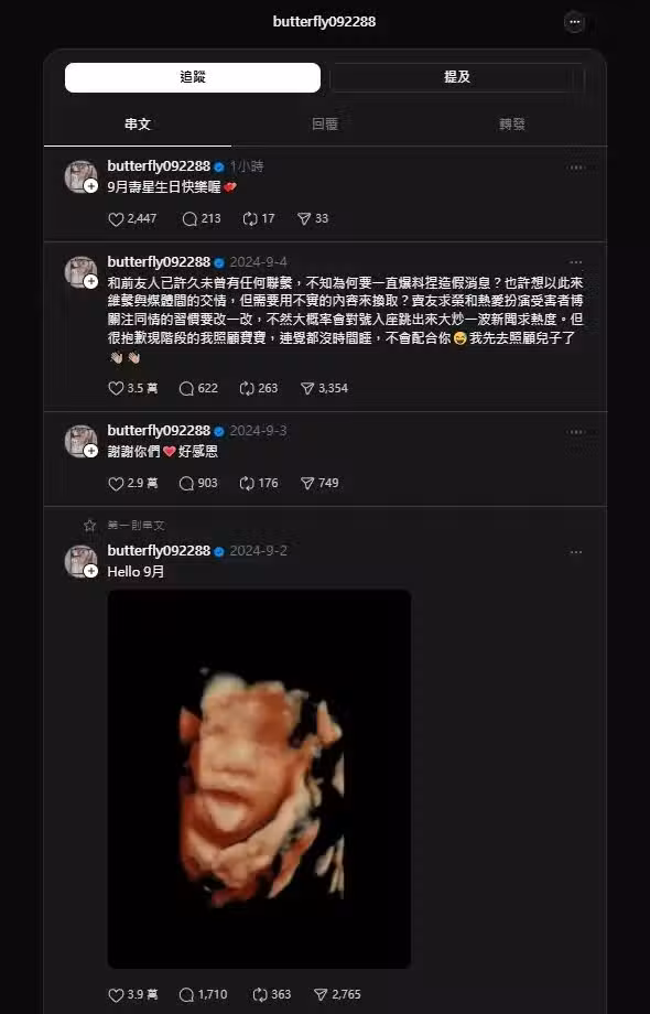 愷樂辦了Threads帳號,偶爾會發文分享心情與日常,讓粉絲們開心不已。