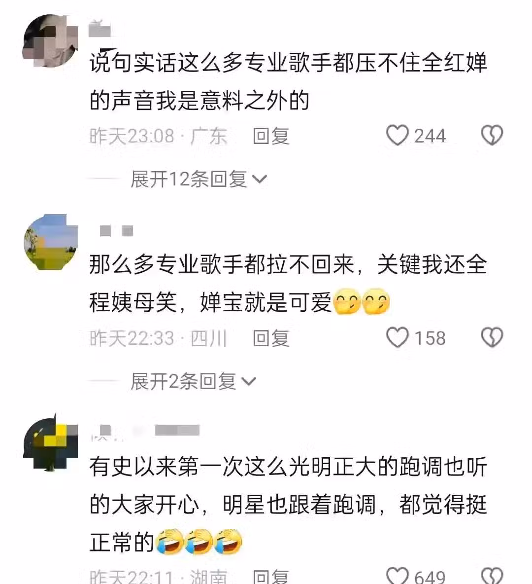 晚會上的這一小插曲不僅給觀眾們帶來了歡樂,也引發了網友們對於全紅嬋唱功的討論。