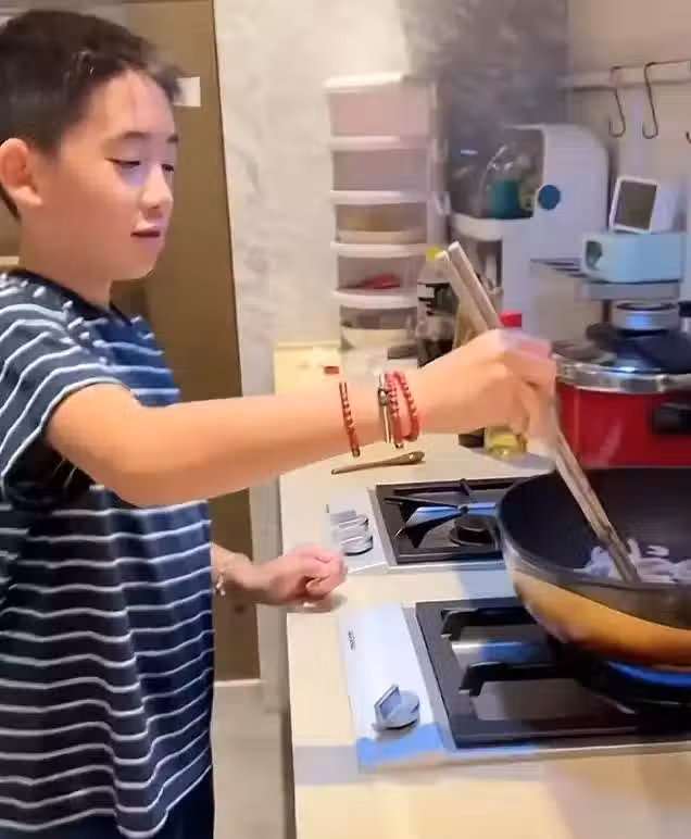 陳小春11歲兒子下廚做飯,應采兒激動記錄,Jasper廚藝獲全家稱讚
