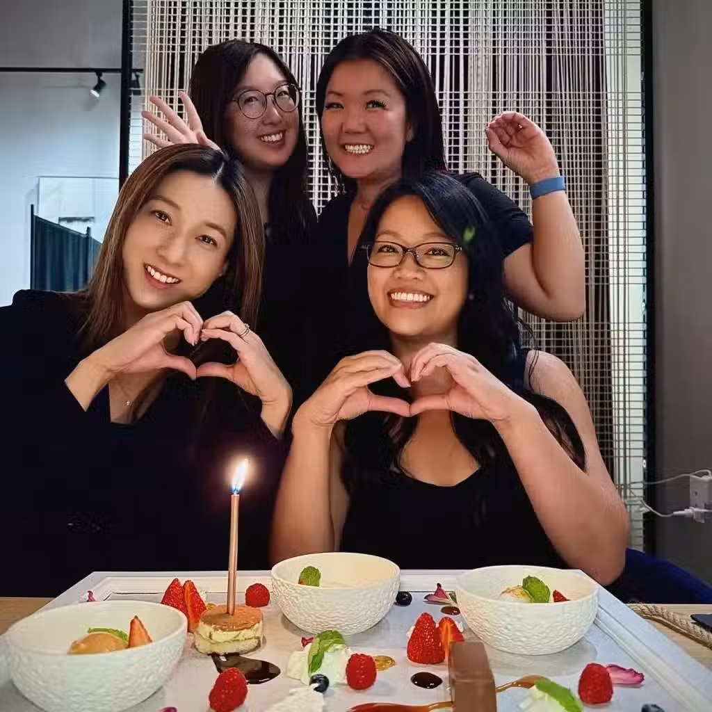 鍾嘉欣昨日貼出與3位女同學聚會的照片,眾人默契地以全黑裙裝打扮出席,都留著一頭柔順長發,與識於微時的好友聚會,鍾嘉欣都很高興,與大家一同比心外,又雙手攬住好友肩膀合照,露出八顆牙齒的標準笑容,活潑開朗仿佛回到了少女時期。