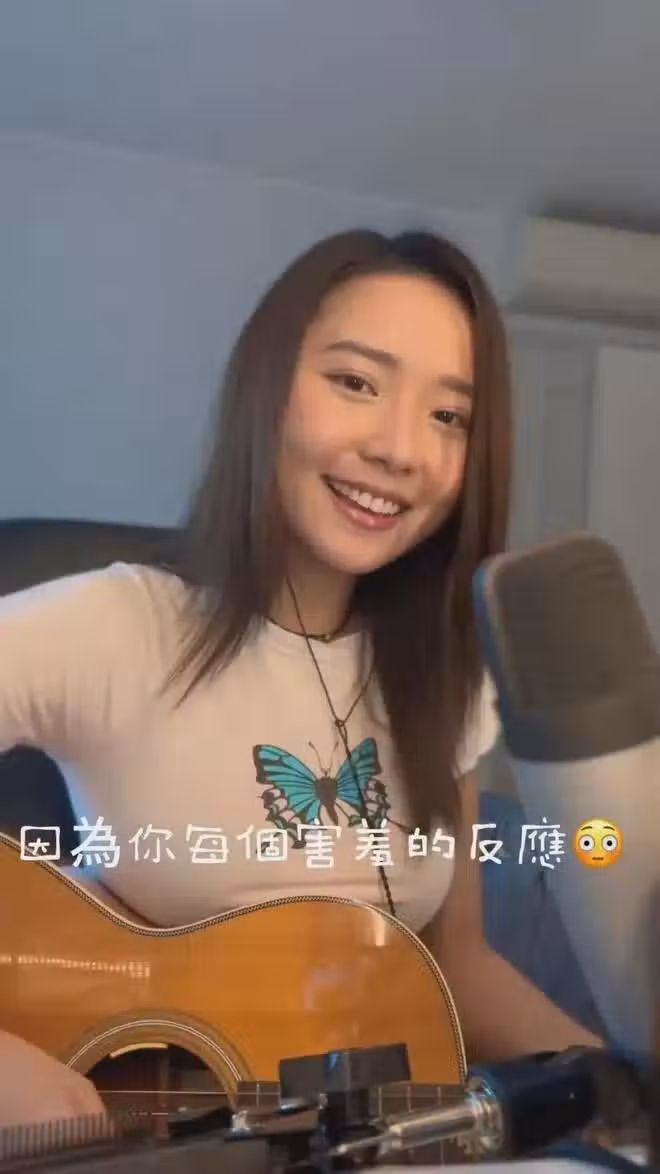 早前她曾在社交平台自彈自唱《烏梅子醬》大展歌喉,不過有網友卻搞錯重點,指她身材太好,緊身T恤都要擠爆,胸前更出現「二」字圖案,上圍相當震撼。
