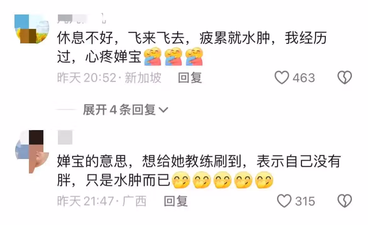 「水腫了」!全紅蟬說自己只是有點水腫,沒有胖,,我卻笑死在有陳若琳的評論區