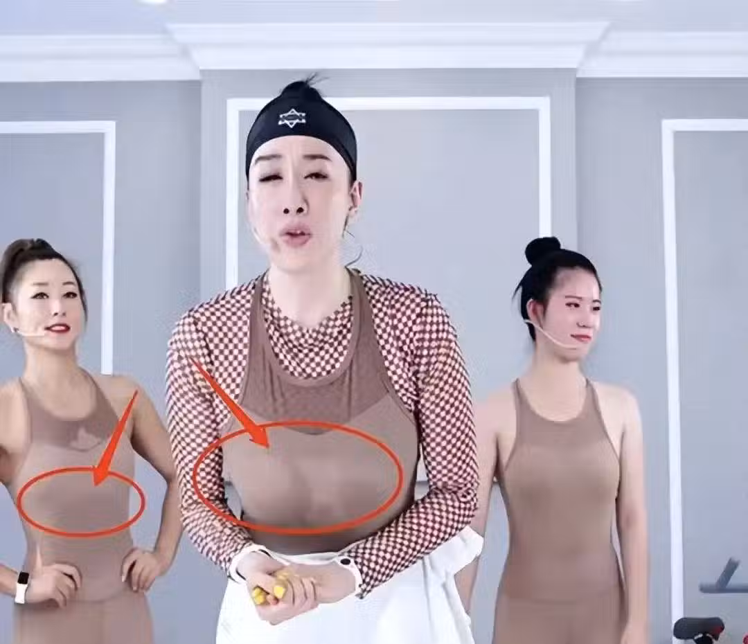 除此之外,鍾麗緹還做起了直播帶貨,並且也是使出渾身解數吸引目光。只見她身穿裸色緊身衣在鏡頭前跳操,腰間的贅肉一覽無餘,甚至沒有發現汗水已經浸透了胸部位置,隱隱透出內衣輪廓,被網友炮轟「畫面不雅」。