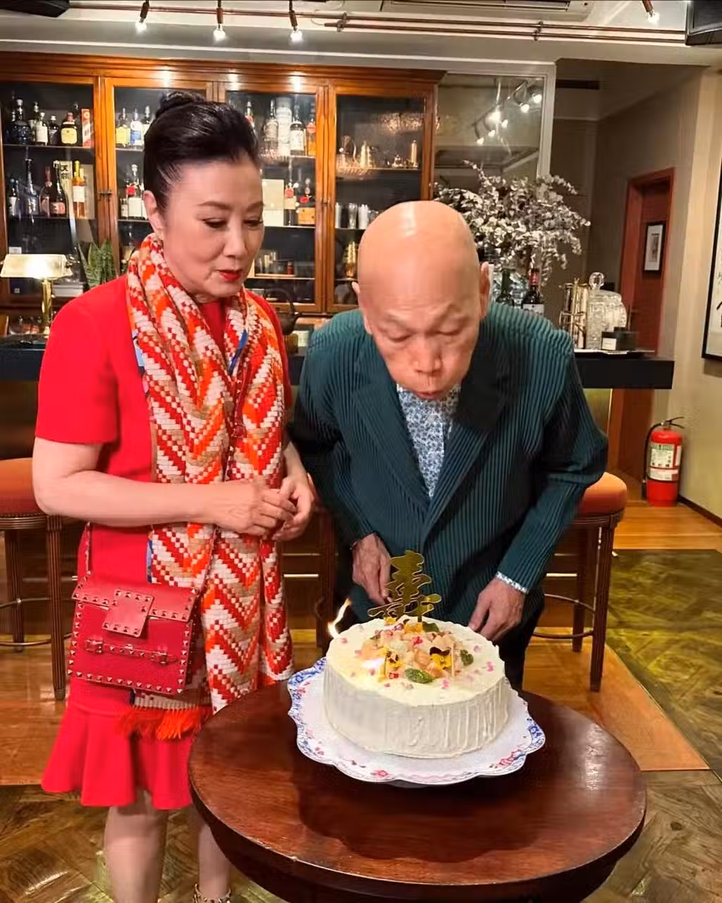 汪明荃慶祝羅家英78歲生日!全身紅打扮喜慶,穿鉚釘高跟鞋潮爆了