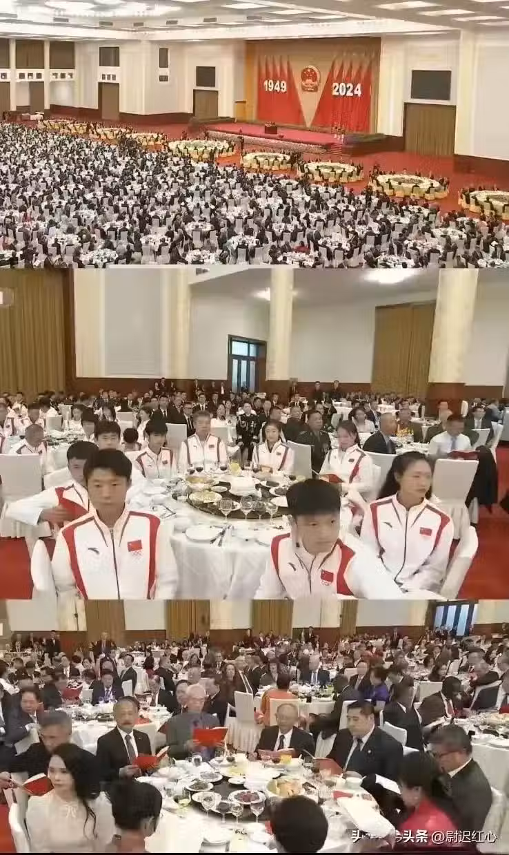 後來網友們發現,全紅嬋坐在另一桌,而且背對著鏡頭。這位17歲的跳水冠軍,靜靜地坐在宴會廳的角落裡,好像和周圍的熱鬧有點不搭。